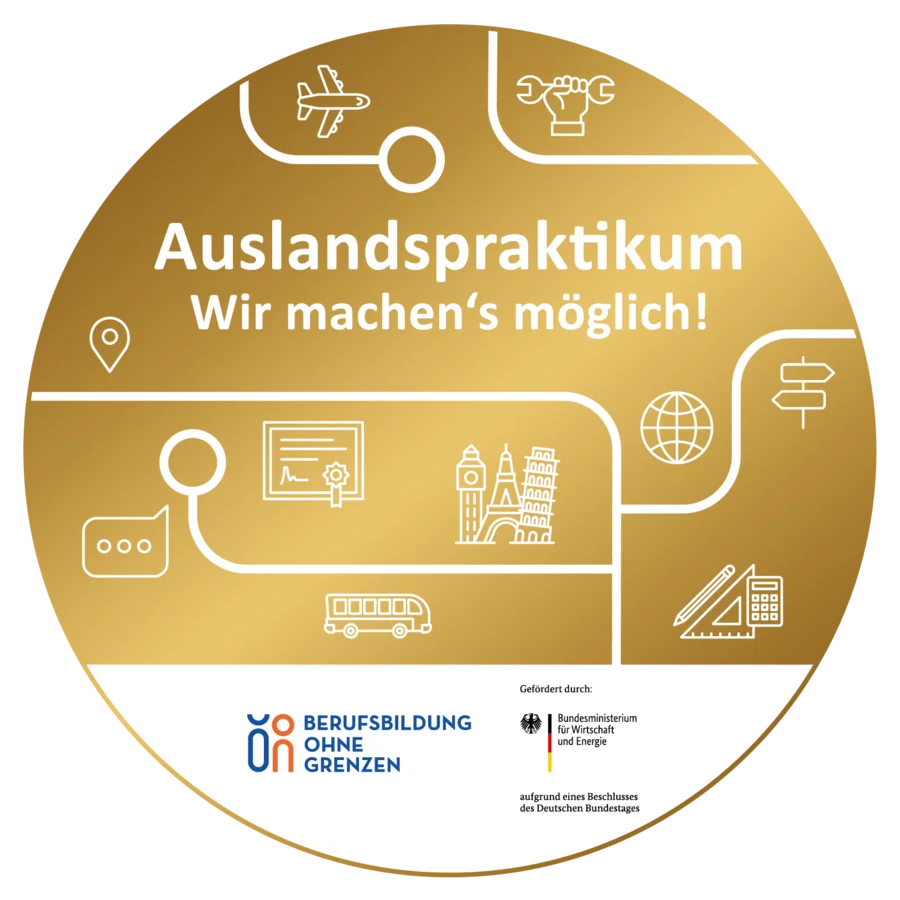 Mit dieser Plakette zeigen wir: Wir öffnen Türen für internationale Berufserfahrungen und unterstützen junge Talente auf ihrem Weg in die Welt.